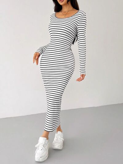 Striped Scoop Neck Long Sleeve Midi Tee Dress